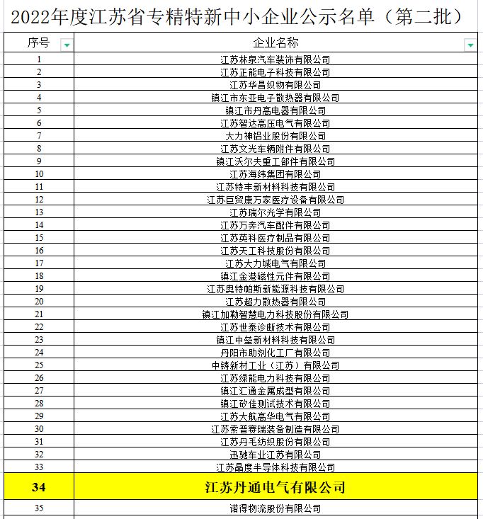 近日,江蘇省工業(yè)和信息化廳公布第二批2022年度江蘇省專精特新中小企業(yè)名單,江蘇丹通電氣有限公司成功從眾多參選企業(yè)中脫穎而出,獲評(píng)2022年度江蘇省專精特新中小企業(yè)。