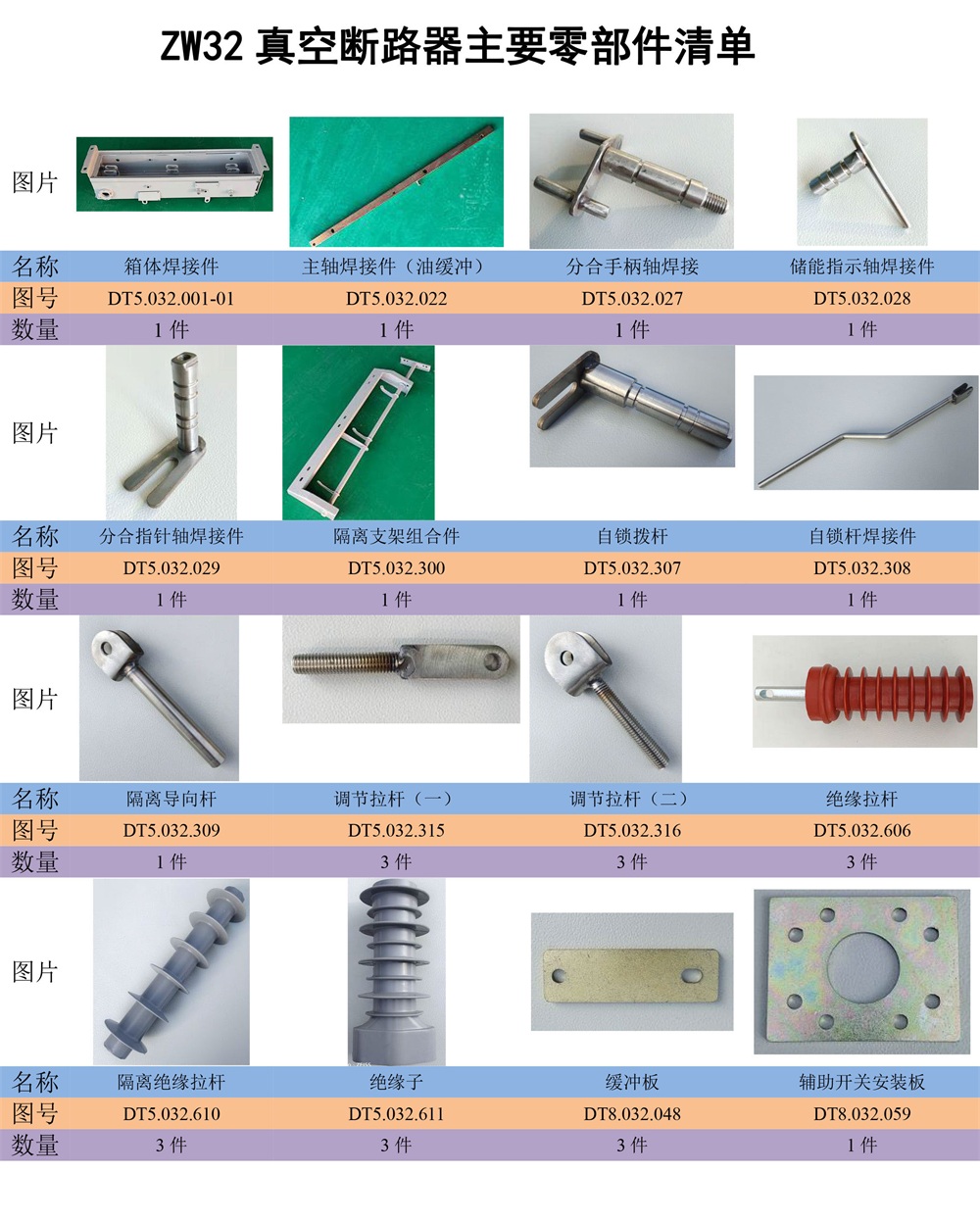 ZW32真空斷路器主要零部件清單